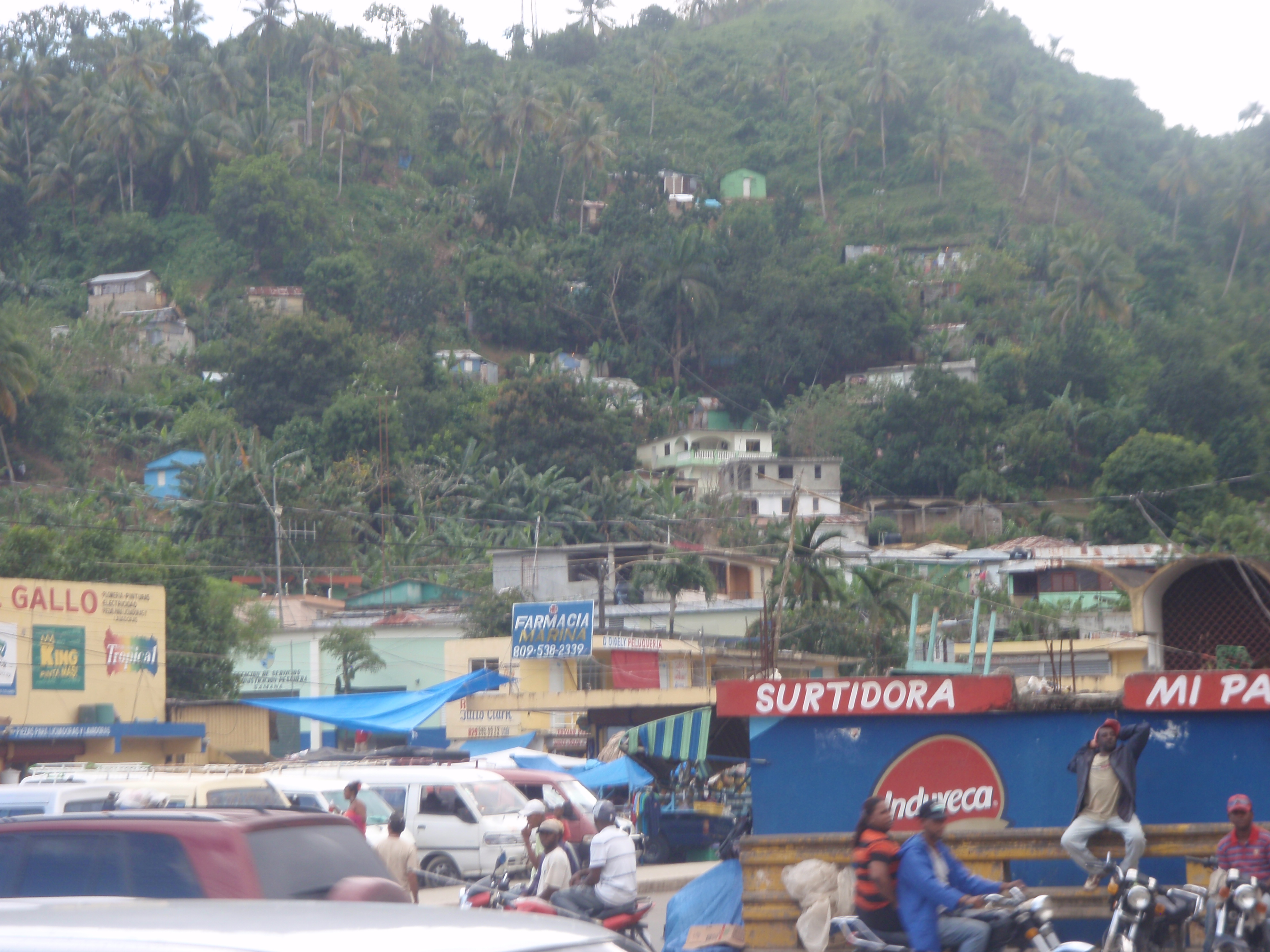 We traveled 5 miles from the Marina by grabbing a ride from the staff truck which was a one way ride to Samana. As soon as we turned onto the local road it was very obvious I was dropped into a 3rd world country. I saw houses or shacks constructed of what ever a person could build a house with and saw kids running around in dirty cloths and people working on cars and whatever they could sell to make a living. As we drove along the roads they where very step and mountainous with lots of water rushing by in the deep red clay gutters. The trees where all palm trees and reminded me of the Jungle. Every man walking the road had on big rubber boats covered in red mud and carried a machete and the women where all carrying water jugs. I even saw a women carrying a cactus plant on her head in a coffee can, not sure what that was about. Maybe she was the local nut or just walking home , who knows. I also saw people riding horses and mules along the road.