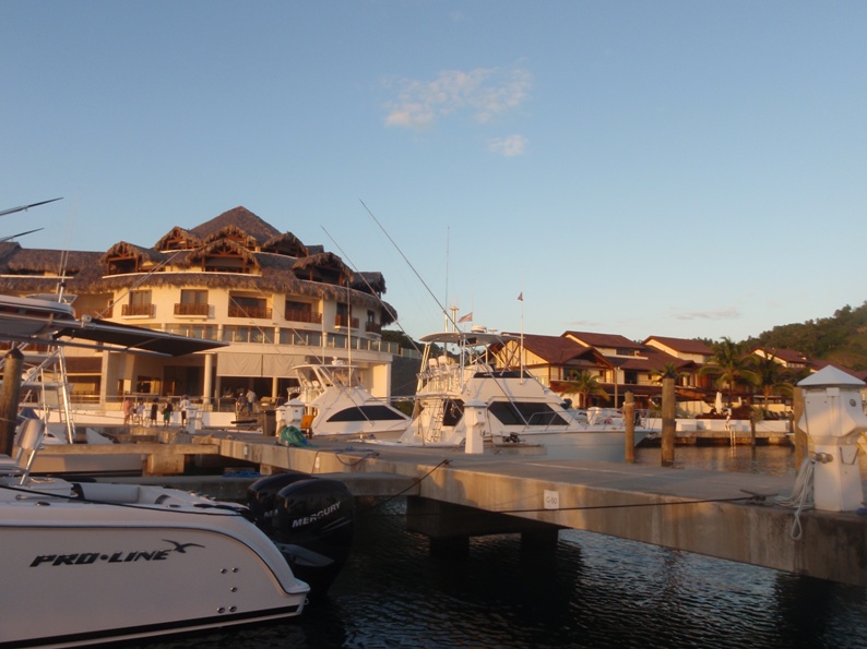 We decided that it was getting late and we wanted to get back to the boat before it was dark. We happened to be outside the Police station so we asked one of the officers holding a pistol grip shotgun where to get a taxi and they said wait here. I watched the officer dress in camouflage and his 9mm gun stuck in his belt band like a gangster put his hand up and stopped a not to happy scooter cab. He told him to take us to the Marina or so I thought. Apparently having a conversation in charades and pictionary is not a good way to explain where you want to go. I wish we had written down the marina name because my Spanish pronunciation was not understood “umm! LA Marinaooo?”. So unknowingly we hopped into this wagon cart pulled by a Honda 125 cc two stoke motorcycle that sounded like a bee on steroids. I thought it was going to explode with me and my dad being pulled up the mountain or the brake would fail on the roller coaster ride down the hills.
