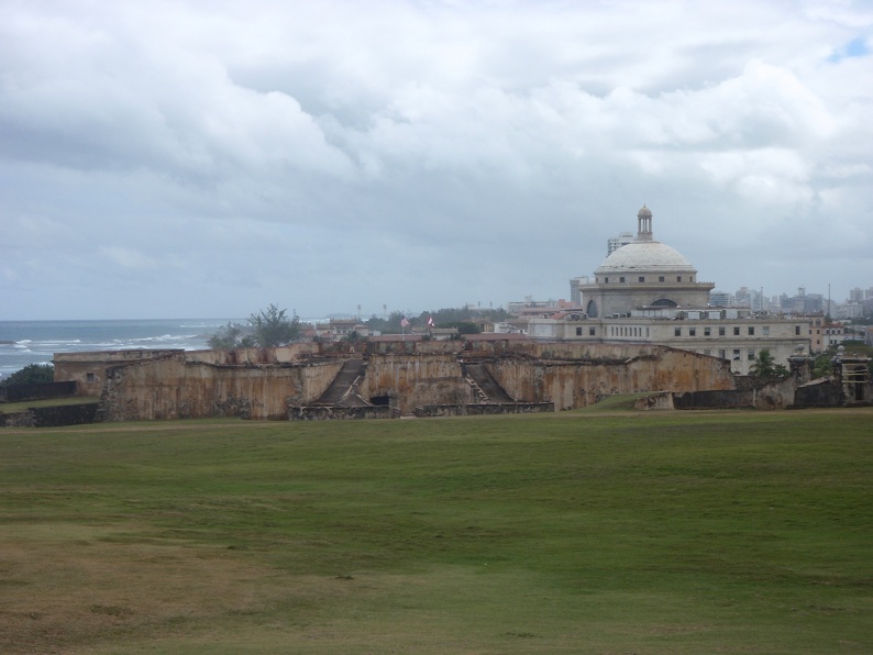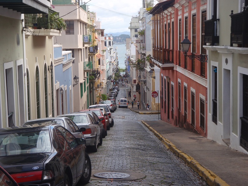 You can tell but all the brick in the road was blue and looked very cool. I wondered how they made the brick to look blue. Picture of the road leading to the San Juan Harbor