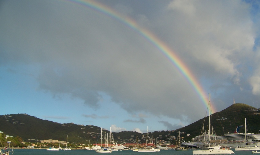 - Today I spent the day first by moving the boat to a better anchorage and then setting up the dinghy on deck. Then mounted the outboard onto the dinghy but found the engine would not start. I pulled on the engine cord for many pulls to the point that both hands had broken blisters. After waiting patiently I gave it one last finally try and the engine fired up. Thank god, because I was about to rebuild the whole dam thing in the water. After a quick dinghy ride to shore we tied up the dinghy but could not get the lock to work due to the salt binding up the lock. My dad suggested soaking it in the fuel tank to dissolve the salt and being a good idea I did so. After pulling out the lock and working it with the key, my hands covered in gas and oil my open blisters burned with pain. So being the smart person I am I dipped my hands into the ocean only to reminded myself that salt water on open cuts hurts even more. Anyway we walked to Frenchtown to a Scuba shop where I met Scott who owns the shop and purchased all my gear for scuba diving and maybe a compressor system to fill my tanks for the future scuba dives. Then we went to a local taco joint and had some very strong Margareta’s. Then after consuming some good food we walked miles back to the dinghy. It’s a funny thing trying to find your boat among 100s of sail boats from all over the world anchored in the same place. Its like play the game of where is Waldo? But we found Dragonsbne and made it back so I can wait till mom arrives at 10:30pm. It should be interesting finding Dragonsbane when I bring my mom from shore. I can’t wait for tomorrow and all the window shopping on St. Thomas we can do.