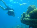 I spent the day with a German Dive Master checking out the diving around Curacao Island. Once again the diving was spectacular with no disappointments. We began or dive from the beach and submerged to 40 feet along a long reef wall where they had dumped a pill of trucks and cars down the 200 foot reef wall. The old cars and trucks where covered in coral like shrubs and ferns as if in a forest. I descended down to 60 feet and saw lots of crabs and crazy looking fish. After swimming back to the beach slowly decompressing along the way we got out of our gear and jumped into this old rusty van and went to the next dive site. We dove off a pier that had a floating oil rig under repair like the ones you see in the Golf of Mexico. Under the shadow of the oil rig we descended down to 55 feet and hovered over a cliff that dropped to 200 plus feet and as I floated off the cliff and looked down I could see dark blue and deep black colors with shadows of giant fish swimming below me. I turned my attention back to the reef walls and watch Sea Horses playing about, and schools of fish, mixed in with giant neon colored creatures. The coral was bright and full of life. As I swam I felt so at peace down in the depths as I came over a reef and saw an old sunken tug boat. Lots of fish now sat in the wheel house and the coal reef was slowly eating up the old wreck. We then swam to the giant pier and into the dark shadows of the deck 35 feet above our heads. As I saw into the dark thin beams of light cut through the water and gave just enough light to illuminate the large Barracuda fish just hanging out. The water was so clear it was if I was standing outside my house looking into the forest with tall hard wood trees at sunset. As I swam between the tall piers I felt like I was in space and I was so relaxed I really never wanted to leave. It was a good day finished up with homemade fish tacos.