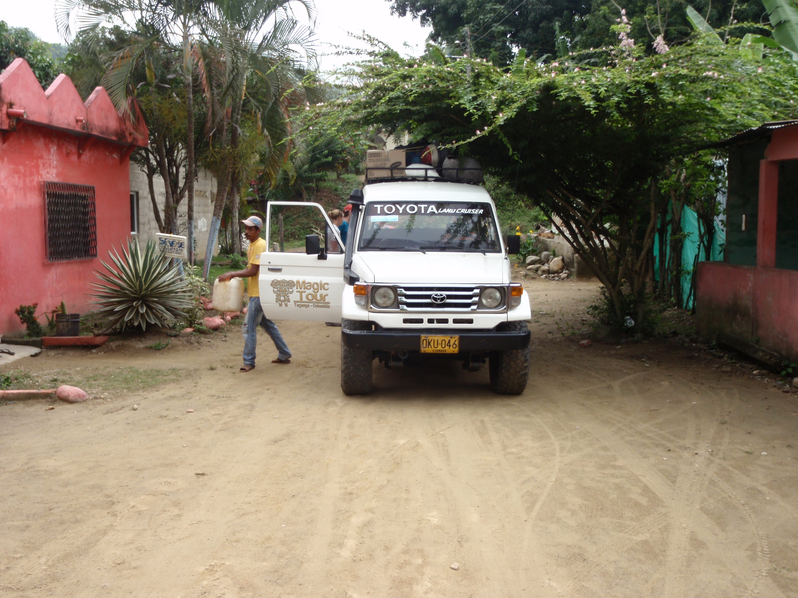 I survived the South American Columbia Jungle and I am now sailing to Panama for the next 2.5 days. I have to say that the trip to Columbia was the best decision so far on our voyage. My trek into the Jungle started 5 days ago in Santa Marta. I arrived at Magic Tours and was greeted by two English men Simon and Rich who booked the same 5 day trip to the Lost City. I was glad that Simon new a lot of Spanish and could understand what was being said. We took a trip by taxi to the city limits and were joined by the rest of our new team to trek into the Jungle. All 9 of us, plus the drive stuffed ourselves into our new clown car which was a small Toyota truck and spent the next 2 hours on the road driving deep into the Jungle.