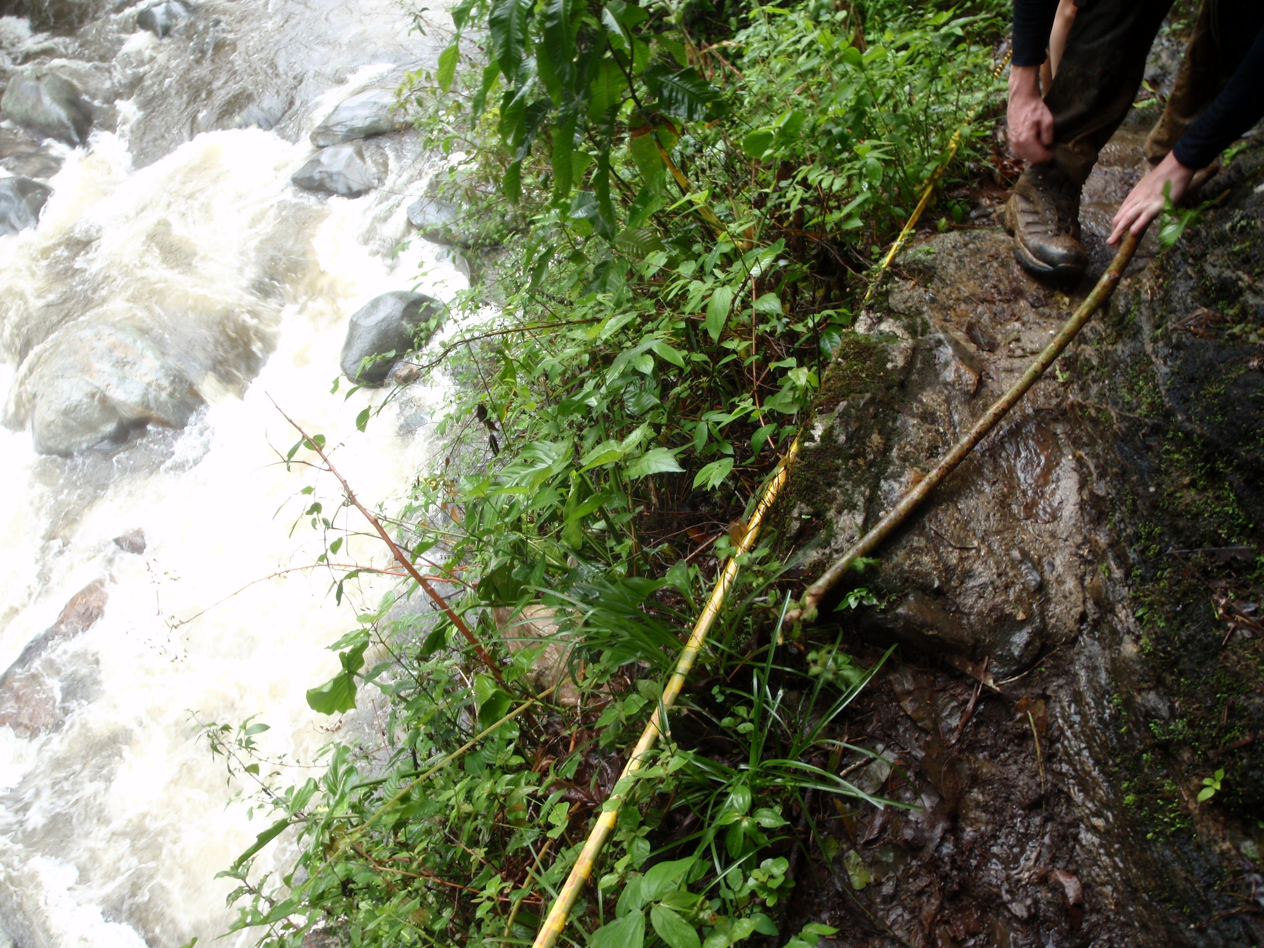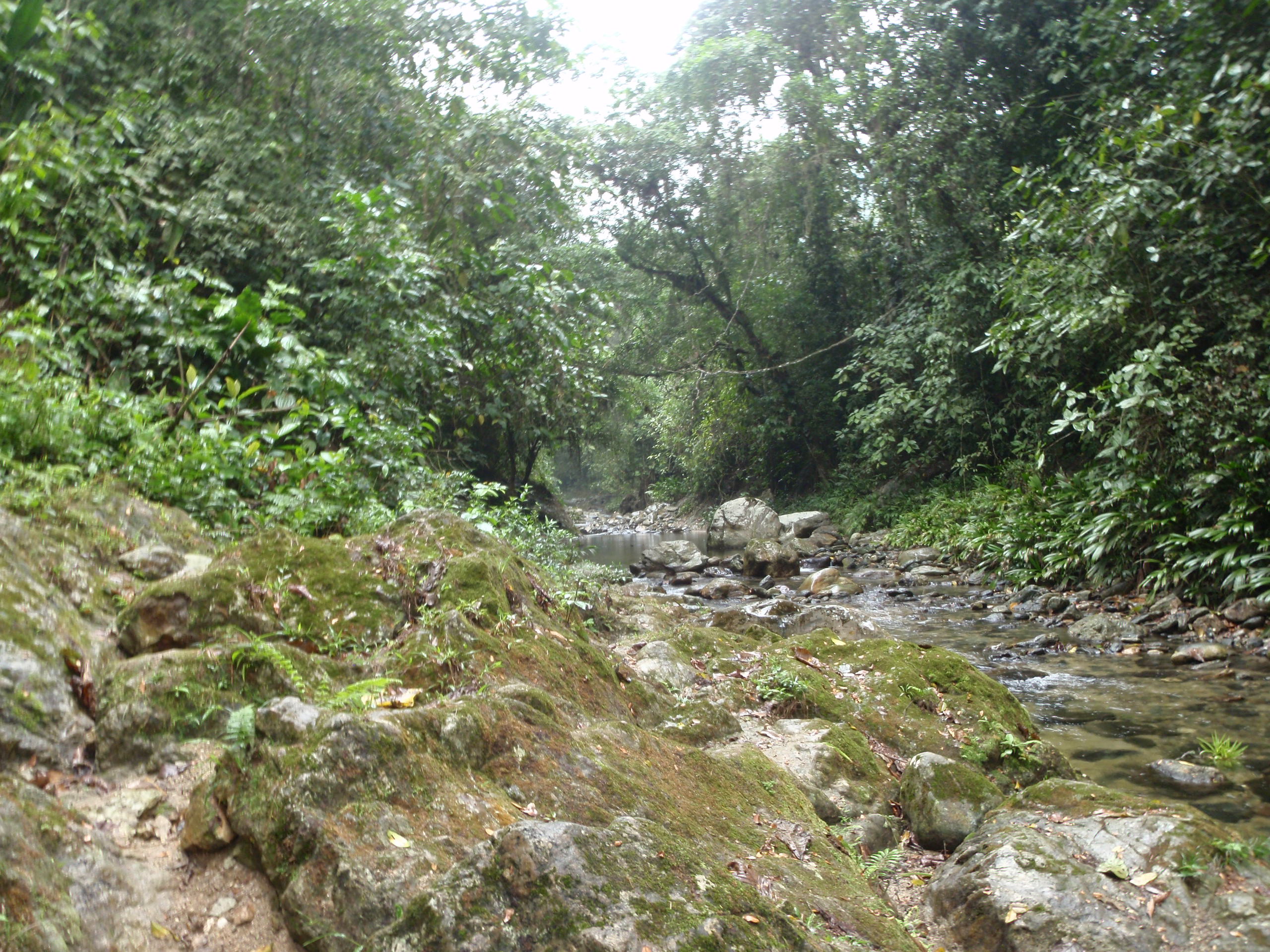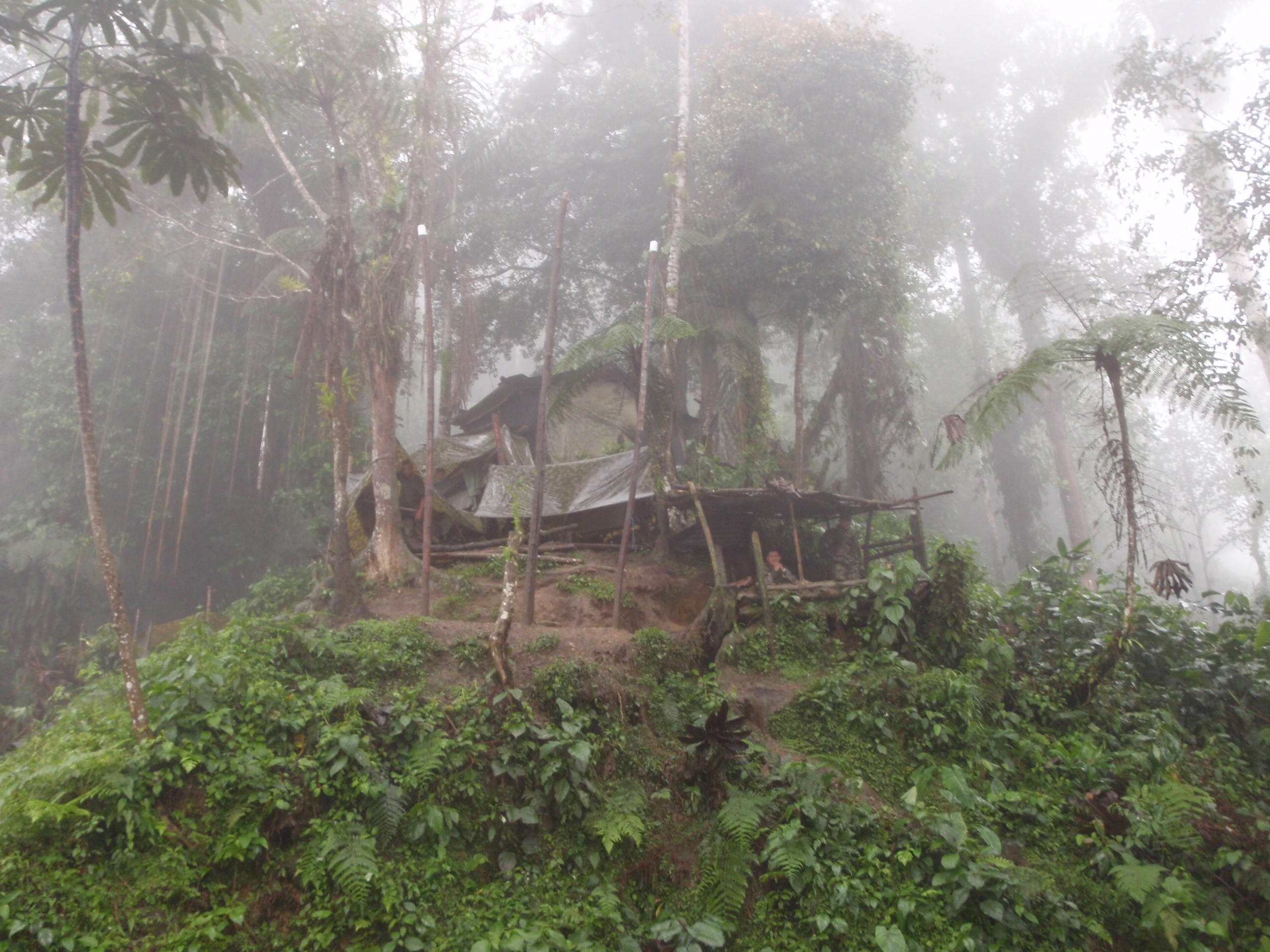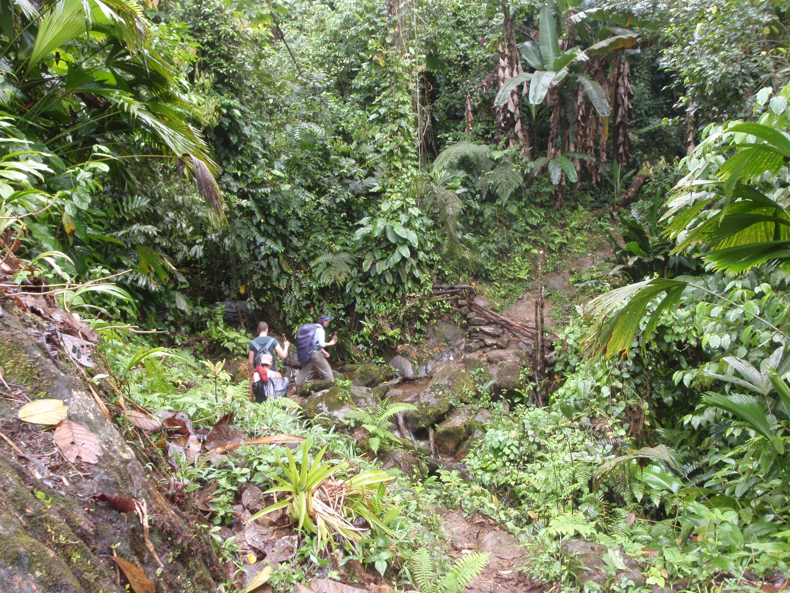 We all awoke early the next day excited to hike deeper into the Jungle. Our breakfast was simple eggs, toast, fresh fruit, and juice. I filled my bottles with fresh boiled smoked water and put on my backpack. We hiked for 4 hours again and arrived in the afternoon at campsite 2. We all took a swim in the river that was next to the camp and enjoyed cooling off from the intense humid heat of the jungle. The water was cool and clean. Once again I enjoyed conversation between my new friends about American and English politics. We talked about our occupations, and the standards of vacation time, pay, typical working hours and so on. I found it interesting that other than the amount of time off we get we all work way to much and the world is getting too fast and out of control. As we continued to talk the rain started to dump down and the noise of the rain hitting the tin roof reminded us that we were really in the deep jungle of Columbia. As the sun went down we all went to our bunk beds this time and listened to the rain, and all the jungle things sing us to sleep.