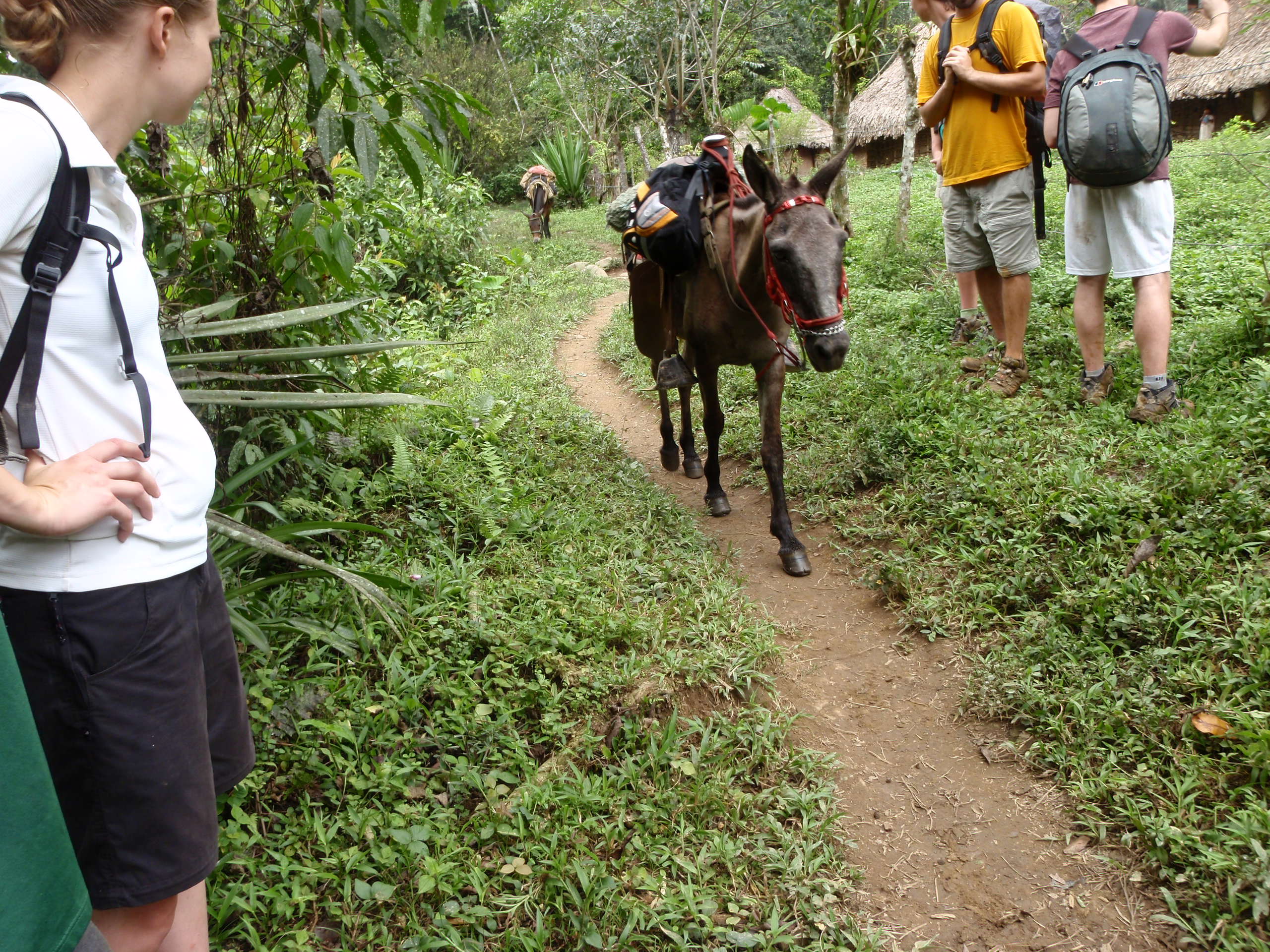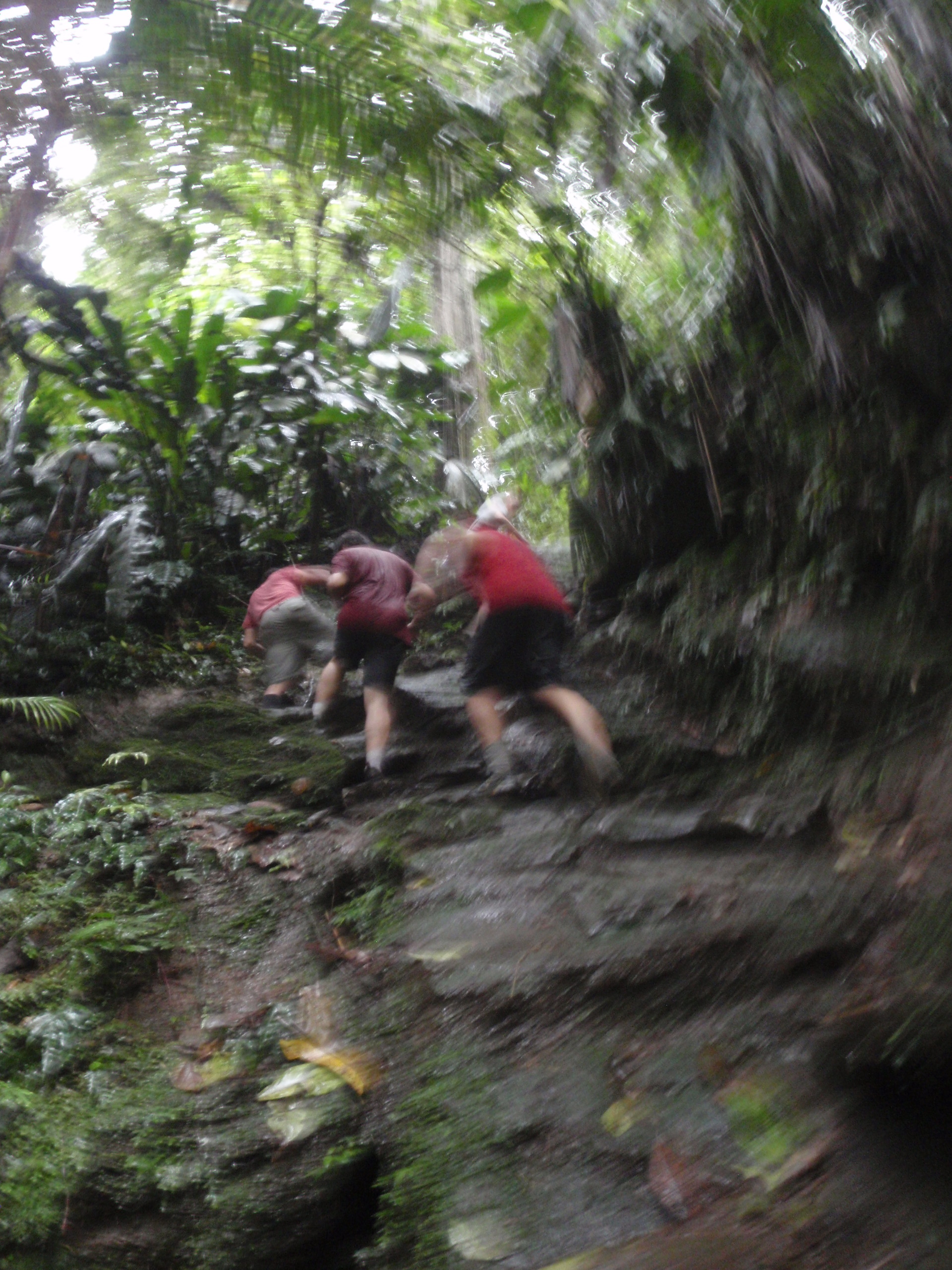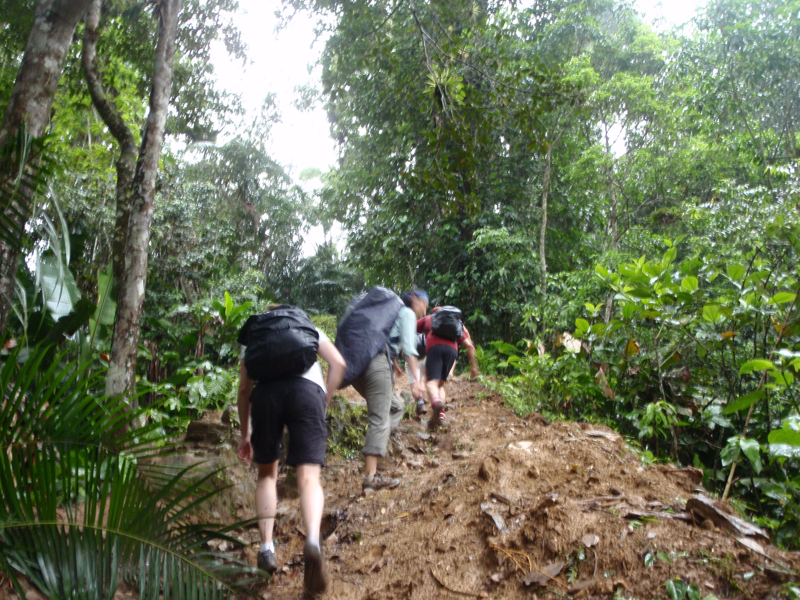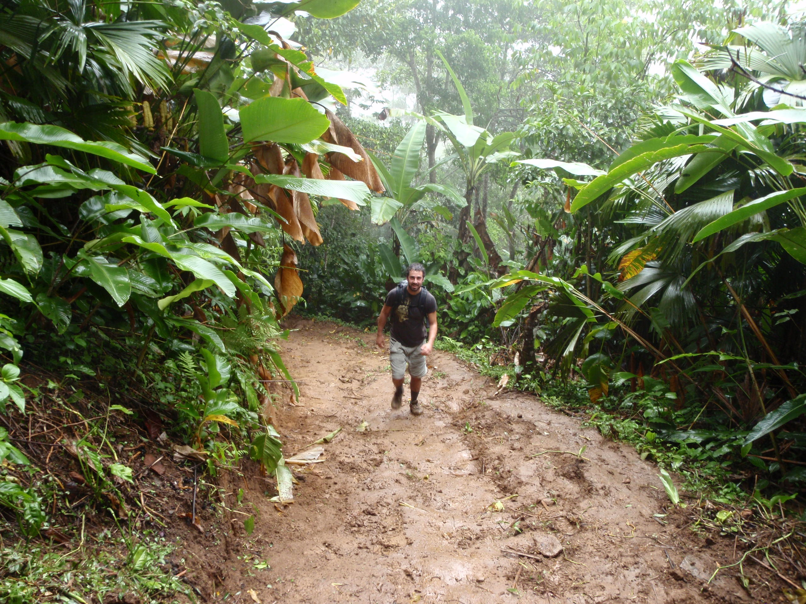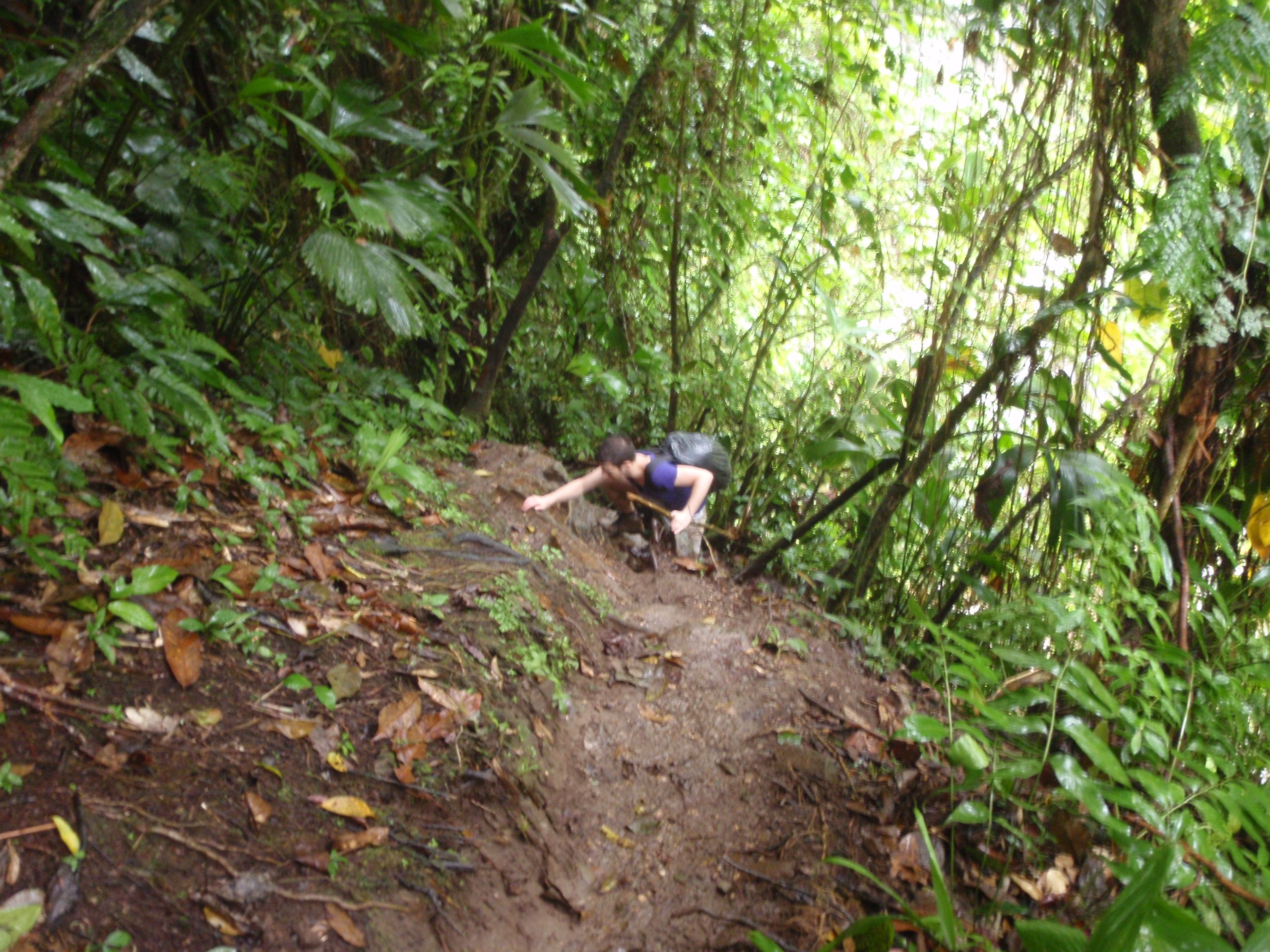 We had a quick lunch provide by our 2 new guides and cook. We then started our 4 hour hike into the Jungle which started out by hiking through a mix of Jungle and ranchers farmers as we climbed higher and higher to our camp for the first night. The terrain was a mix of streams, and steep muddy paths that had cross traffic of local ranchers moving supplies by horse through the mountain. We finally arrived 4 hours later at our campsite number one. The campsite was rustic, but included a hammock with an insect net for sleeping. We enjoyed a great meal of pasta and fruit from the jungle. We then enjoyed talking to one another about our travels and places we have been. We played cards and most of group went to bed. But a few of us wanted to play one more game in the candle light. As we played 100’s of insects started to cover the table around the candle light and soon our playing cards where covered with bugs. We had to shack the cards every time to get the bugs off so we could play. We quickly decided that after the king of hearts started to walk away by itself that the game should end and we went to bed. But our guide told us to use our flashlights and make sure we looked at the ground as we walked for poison snakes, and scorpions. I crawled into my hammock and found it very uncomfortable because my legs kept going to sleep. I soon found out that no matter what you always slid down in the hammock and the blood rushed to my head. Even though I was uncomfortable I was soon asleep as the jungle came alive with millions of new noises that I have never heard but was very soothing.