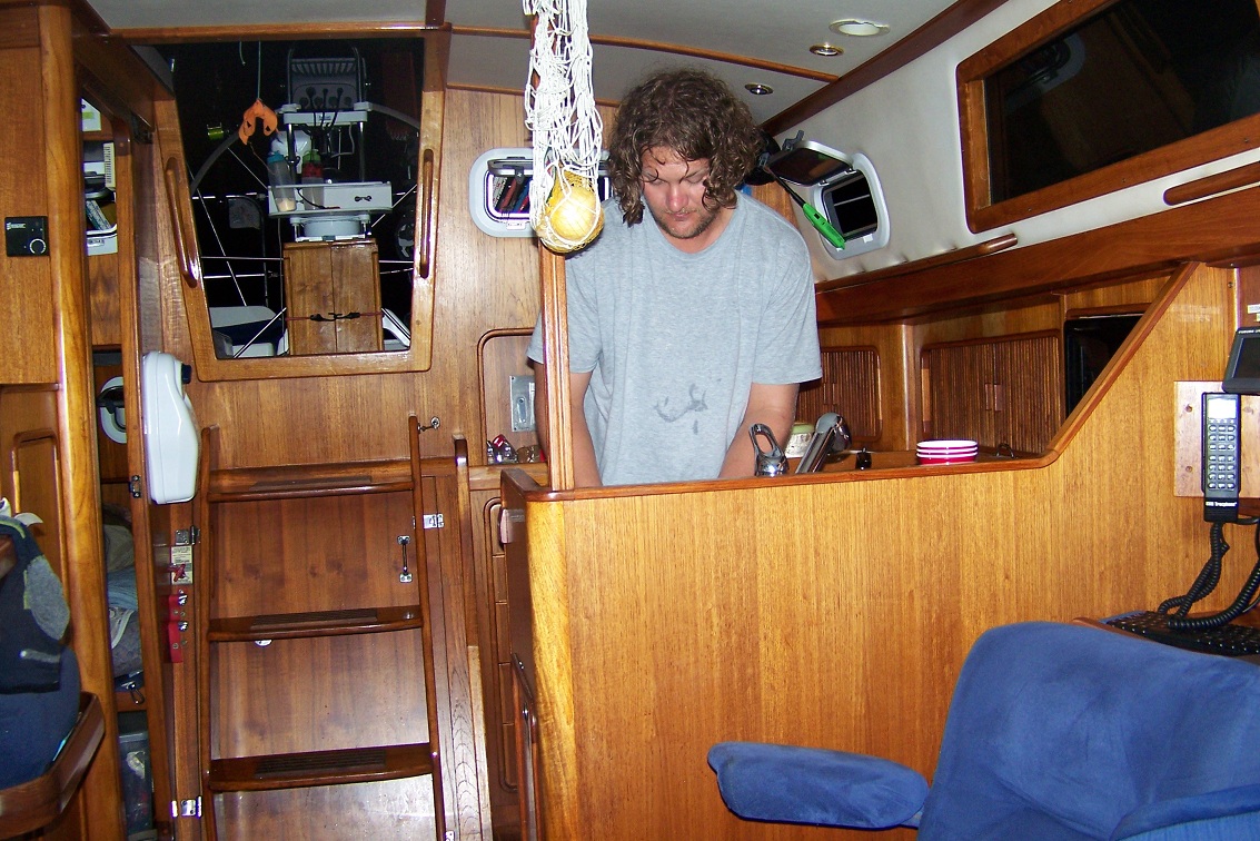 Today was another exciting day of sailing with wind in the 10 to 20 knot range. We all spent most of the day doing house keeping thing on Dragonsbane. Washing cloths by hand and watching some of the cloths get blown off the life. I guess I won’t have to do so much laundry next time. Adam made spaghetti with red sauce but never put any SPAM into the sauce which made me sad. It was at least fun to watch a person without his sea legs make a meal well Dragonsbane jumping all over at a 20 degree slant for the first time. He is learning that when you set something down it fly’s across the cabin and that more of the lands on the floor then in the pot. He found this out last night when he set his coffee mug in what he thought was a secure location. As Dragonsbane jump across waves his mug jumped up, then shifted to the right, then down, and back up. I watched his mug go up, over, and then down on the floor and coffee everywhere. He gave up on coffee and went on watch pissed off enough to keep him up for 4 hours. An hour or two before his watch my dad was sleeping in the forward cabin and I hit a big wave that came over the top deck. My dad had not closed his hatch all the way and was waken up with a shower of cold salt water. He had fun cleaning that up today. But don’t think I am left out in all the fun of my two comrades I too have hit my head so many time from Dragonsbane shifting quickly and I have lots of cuts in my shins from kicking winches in the cockpit. My bed has been soaked at least 3 times sense we have left Panama. Yes the fun is just beginning and we are all in good spirits.