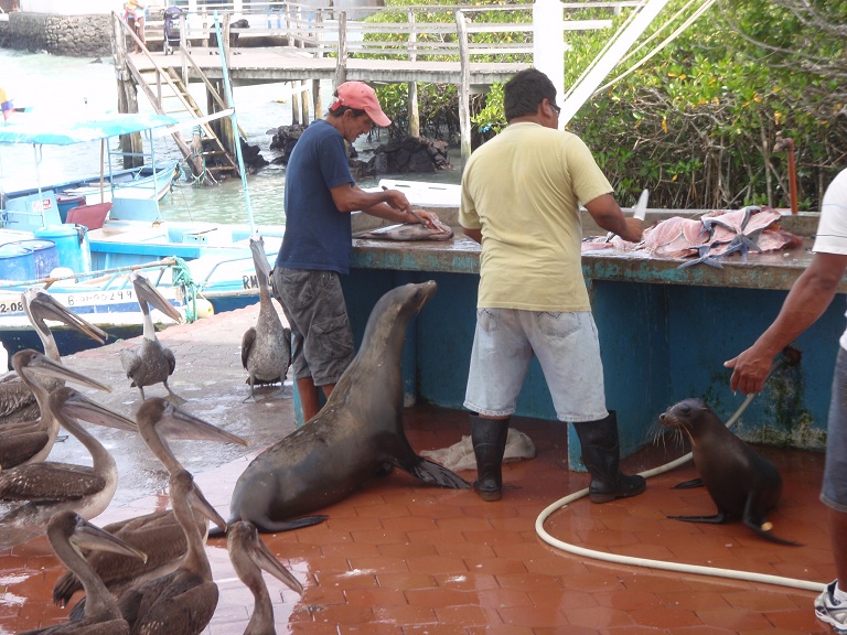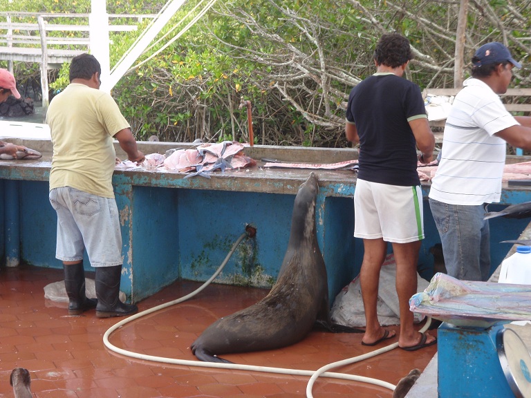 So far this was one of the most challenging dives I have completed. I was told that there were strong currents and that the experience was a must. So having 12 dives under my belt I jumped in full ass! We started our adventure at 6am, we were picked up by the dive boat off Dragonsbane and found out it was only me, Adam, and a nice guy named Bob from Canada who had 389 dives. As we zipped along the coast of San Cruz Island for about 45 minutes to Gordon Rock dive site, we were thrown forward and the engines stalled out! We hit a Manta Ray that was 20 feet long and it stopped us cold. Our dive master and us were very sad to have hit such a beautiful ray. I felt so bad because I felt like I just added to the problem of negative human interaction that you hear about in Galapagos. The dive master said it will more then likely die of its wounds.