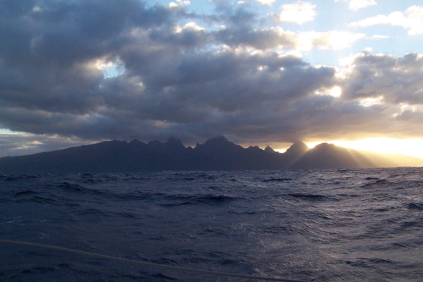 As the sun rose over South Tahiti it shined over the mountains that rise 4500 feet above sea level and the sunlight warmed my face as we searched the reef breakers for our narrow passage into the anchorage as Adam slept below. It was a cold night became its winter here, almost 75 degrees last night!