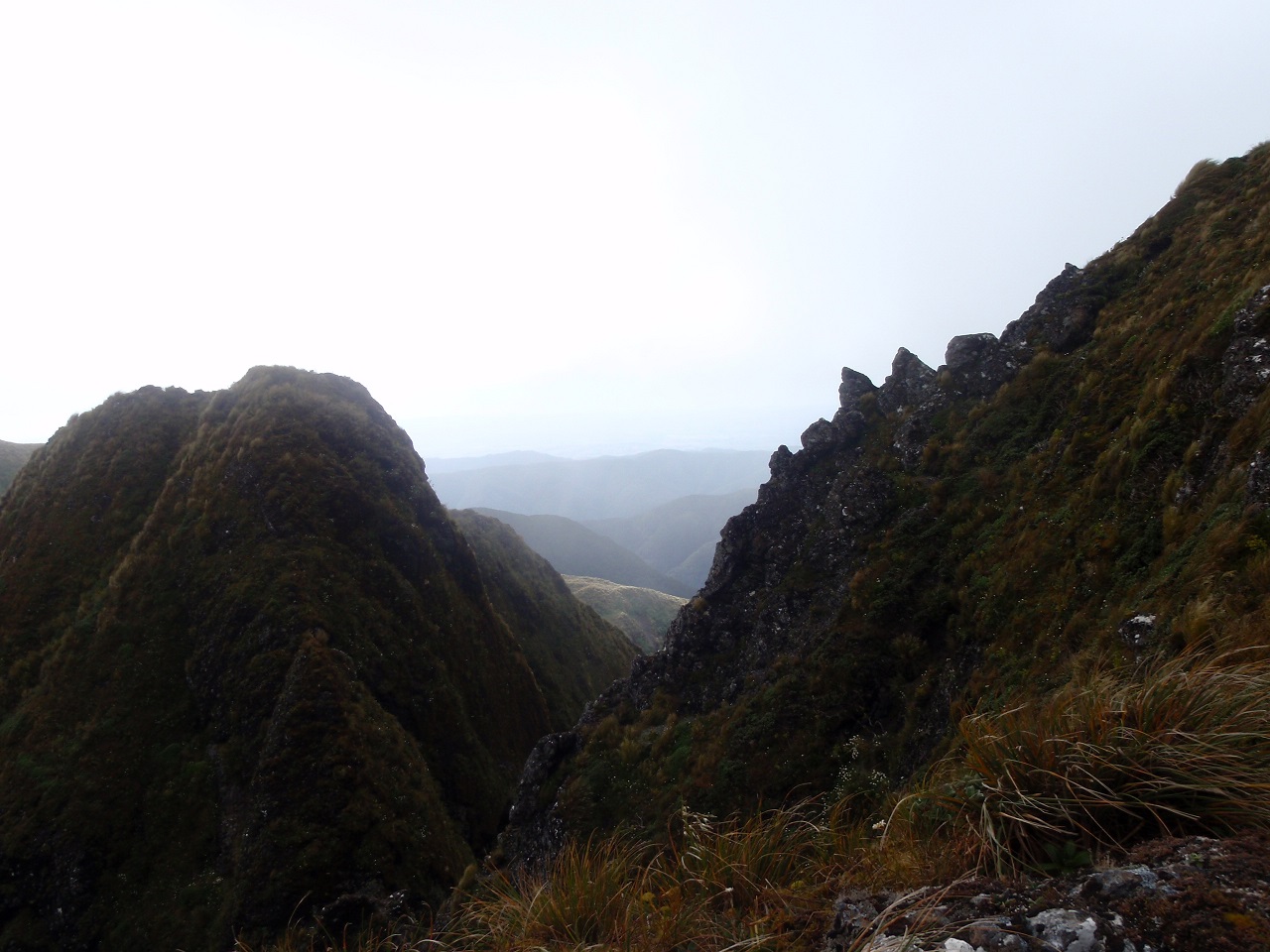 I was far into the range and above the tree line for good now, but the great west wind gales from the Tasman Sea kicked up as I climbed higher into the clouds across the mountain tops.
