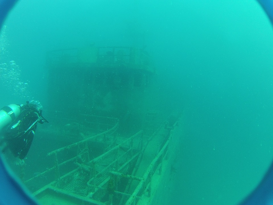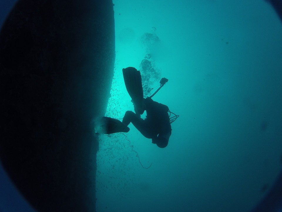 Desending down to 84 feet to go through a old French navy ship 150 feet long. I saw no guns but did see the 50 cal. Shields. It was very cool to see the ship come into view as we desended down onto its deck.
